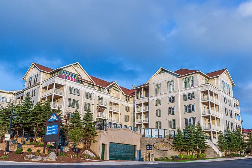 The Seneca delivers luxury mountain living in the heart of Snowshoe’s Village, offering convenience and comfort just steps from the slopes. With accommodations ranging from junior studios to a spacious six-bedroom penthouse, The Seneca offers a floor plan for every traveler. All units are air conditioned. Guests enjoy 2½ levels of heated underground parking, a garden patio with a large outdoor swim spa featuring sweeping mountain and sunset views, a firepit, sauna, fitness room, a beautiful hearth room, and conveniently located ski lockers. Every detail is designed to elevate your stay. APPROXIMATE DISTANCE TO SLOPES: 25-50 yards.