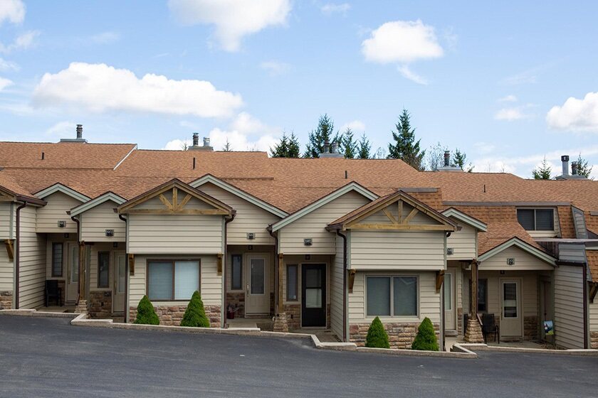 Mountaintop lodging with a common area that includes basketball, tennis courts and green space. Walking path to the Village and short walk to the Western Territory. One, Two, Three and Four Bedroom Units Available. APPROXIMATE DISTANCE TO SLOPES: 190-270 yards